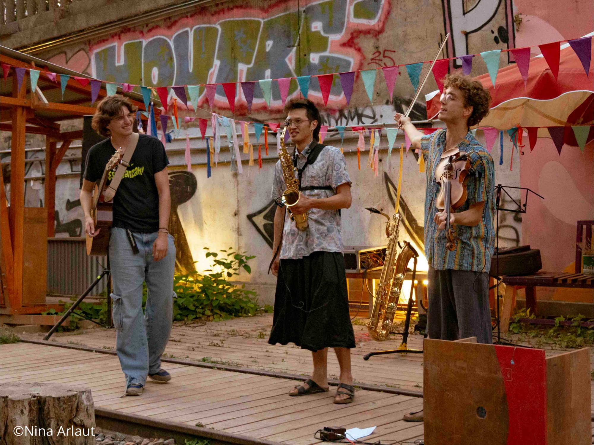 Ce trio saxophone-guitare-violon explore différents registres, passant librement d’une ambiance à une autre. Mais un fil rouge demeure : le plaisir de jouer, et la joie de partager la musique avec celles et ceux qui l’écoutent.