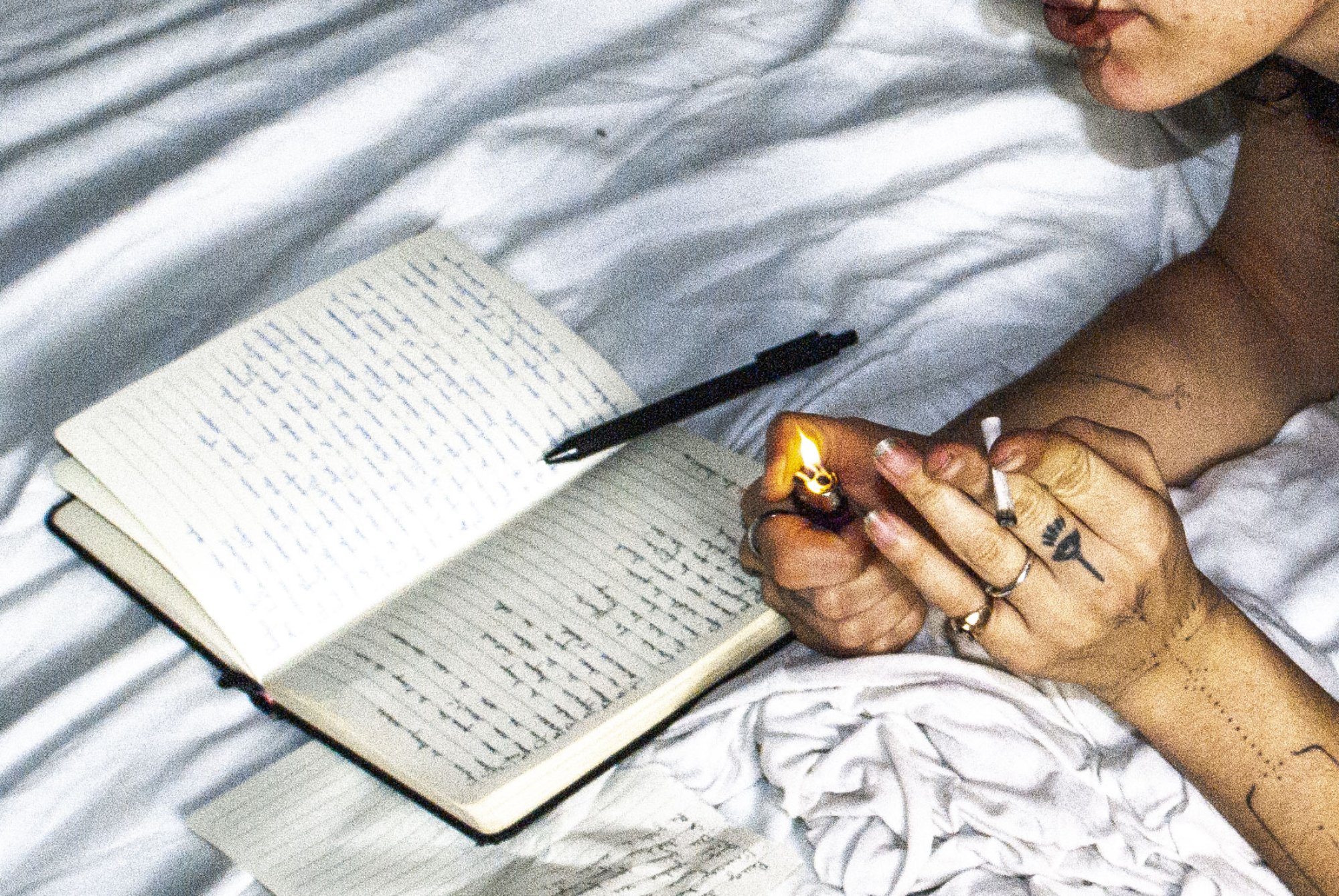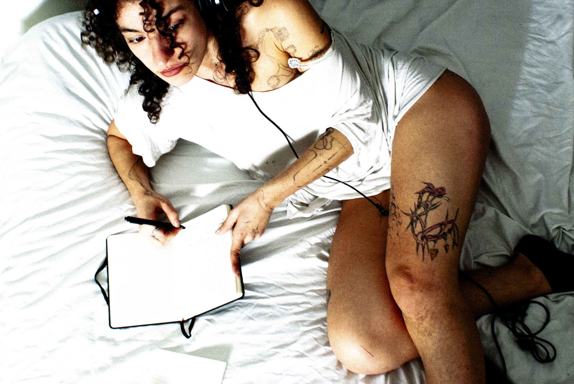 Mes textes explorent les émotions, la sensualité et la mélancolie. Les blessures y sont pansées, écrites, musicales, physiques.
