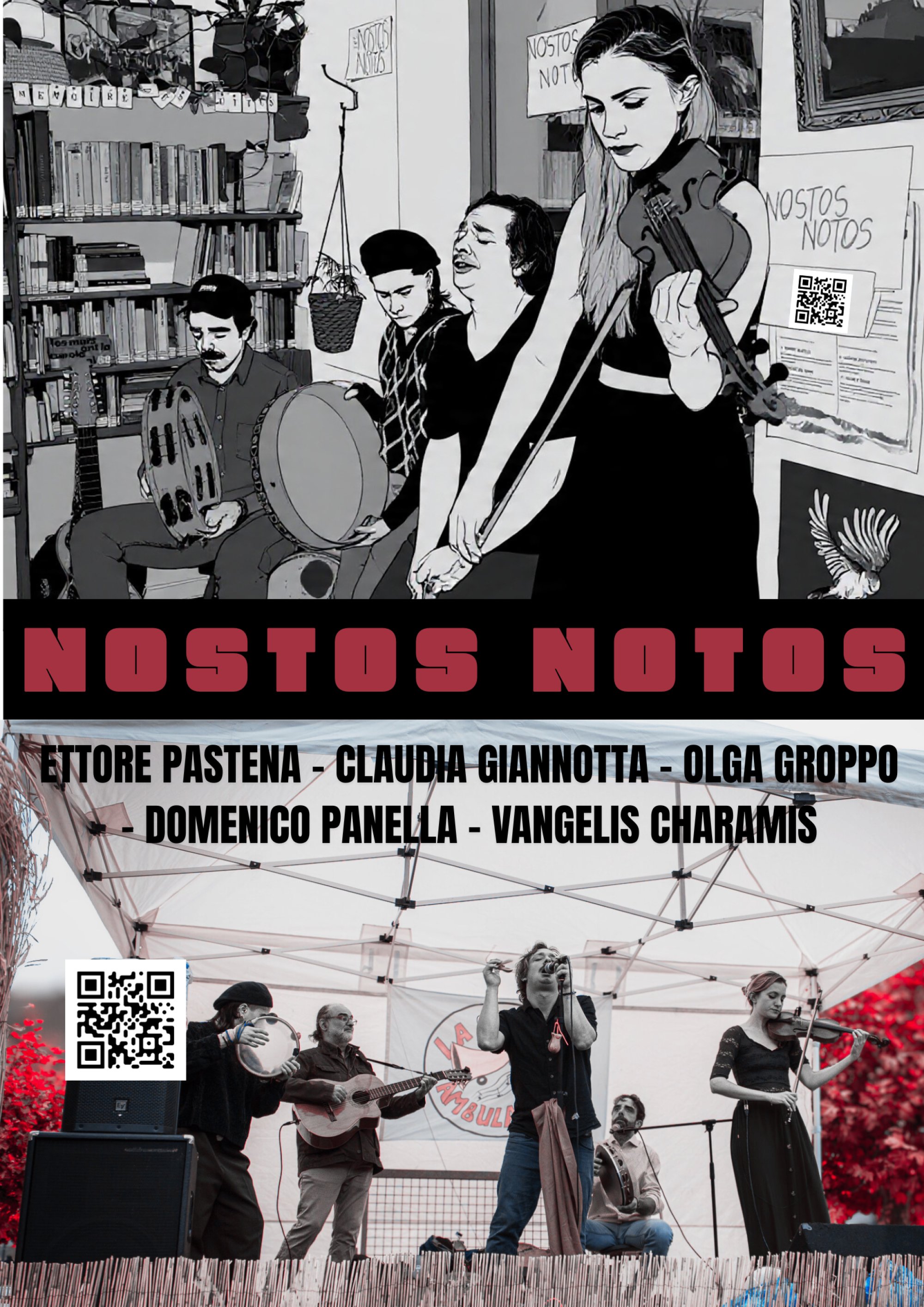 The myth of tarantula is still alive today, it releases signs of the past and at the same time reflects the present mainly through the contact among people and the comparison of lifestyles that constantly change over the years. Tarantella is a means of communication which expresses the origin and culture of Italy. The music of Nostos is a mixture of songs that revisits popular music while combining tradition, modern expression needs and personal experiences.